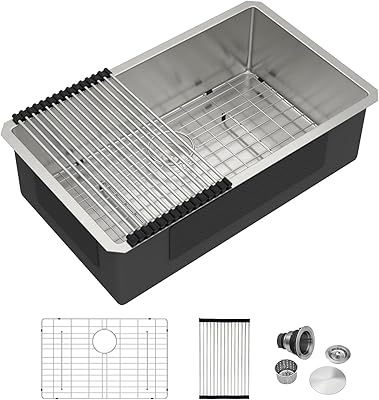 28 Inch Undermount Kitchen Sink- Stainless Steel Single Bowl Kitchen Sink with Drying Rack Under Counter Sinks 28x19x9 T304 Stainless Steel Quick Drainge