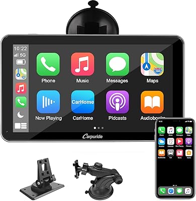 Carpuride Wireless Car Stereo with Carplay and Android Auto, 7 Inch Full HD Touch Screen Portable Car Stereo with Mirror Link, Bluetooth, Car Audio Receivers, Car Radio